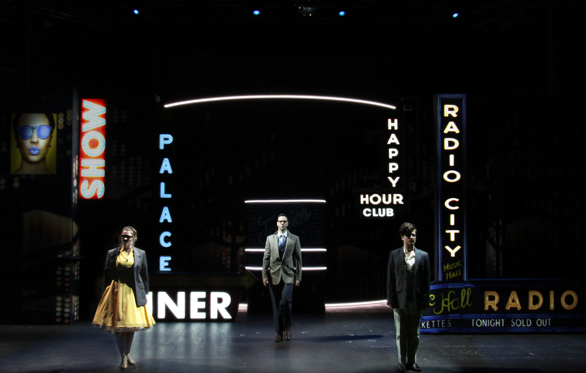 Musicalzentrale vom 12. Juni 2024 „Tootsie – Burgfestpsiele Bad Vilbel" von André Böke "Beim Betreten des Auditoriums fällt Pascale Arndtzs schönes und stimmiges Bühnenbild direkt auf: Eine Broadway-Kulisse im Pop-Up-Stil ist über die gesamte Bühnenbreite aufgestellt und mausert sich als visuelles Highlight des Stücks. Die zahlreichen Neonschilder, die renommierte Theaterhäuser wie das Palace Theatre bewerben, sind erstaunlicherweise trotz der flachen Pop-Up-Aufsteller-Optik auch noch beleuchtet. Einzelne Spielorte werden durch wenige um 180 Grad drehbare Elemente angedeutet, die sich ebenfalls perfekt in die Visualität des Hintergrunds einfügen – so wird aus der Bar buchstäblich im Handumdrehen eine Männer-WG oder ein Künstlerbüro. Eine wirklich schöne Möglichkeit, das anderweitig bei Indoor-Inszenierungen gerne pompös ausgestattete Musical passend in ein Open-Air-Setting zu versetzen..."